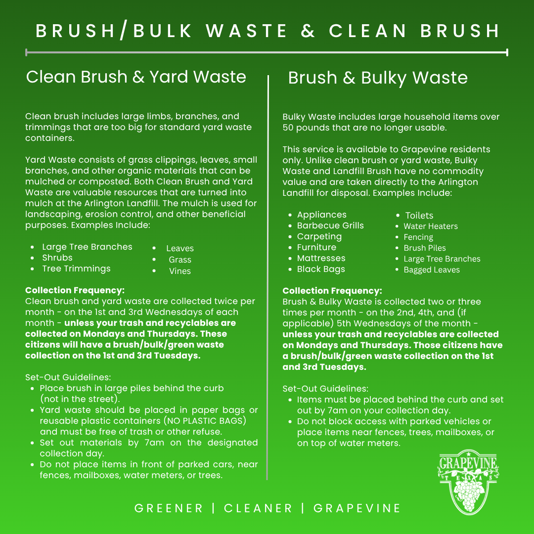 NOTICE: For Bulk/Brush and Green Waste Collection details see FORMS AND LINKS below.